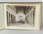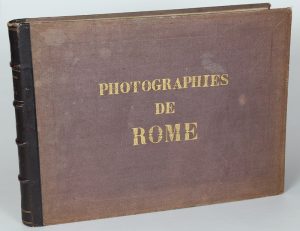 ROME : Bel album photographique vers 1900 comprenant 32 tirages sur papier albuminé couleur sépia des principaux monuments de Rome. Bel ouvrage au format oblong avec sa reliure en percaline couleur brune comportant le titre au centre sur le...