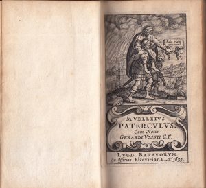 VELLEIUS PATERCULUS (19 av.J.C-31 ap.J.C) notis Gerardi VOSSII : « Historiae romane » Lugd Batavorum (Leyde). Ex officina Elzeviriana 1639. Page de titre gravée d’une vignette représentant Enée portant son père Anchise fuyant Troie en...