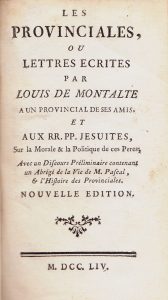 Les Provinciales est un ensemble de dix-huit lettres, en partie fictives, écrites par Blaise Pascal sous le pseudonyme Louis de Montalte ayant d’abord eu pour but de défendre le théologien janséniste Antoine Arnauld, menacé d’être condamné par la Sorbonne, avant de s’orienter vers une critique de la Compagnie de Jésus et en particulier de certains de ses membres.