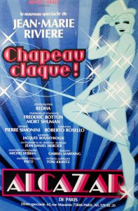 ALCAZAR de Paris : AFFICHE 80 x 120 cm d’après J.M.Fonteneau pour le spectacle « Chapeau claque ! » Entoilée, état A