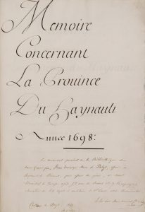 *** [Hainault]. [Manuscrit] Mémoire concernant la province du Hainault, année 1698. Copie manuscrite soignée de l'époque, encre sur papier, [1] f. (titre), [84] f. chiffrés, [1] (table), écrit r° et v°, env. 17 lignes par page, reliure...