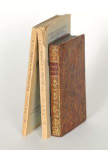 Pierre Marie François HUVIER des FONTANELLES (1757-1823) : « Les soirées amusantes, ou entretien sur les jeux à gages, et autres…. » – Paris, Veuve Duchesne, 1788. Édition originale In-16 dans une reliure en veau marbré, dos lisse orné...