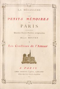 « LA MESANGÈRE, LES PETITS MÉMOIRES DE PARIS I LES COULISSES DE L'AMOUR » Paris, Dorbon l’ainé, 1908. Édition in-24 en 6 volumes brochés, non rognés, en partie non coupés intitulés comme suit : •1.Les coulisses de l’amour...