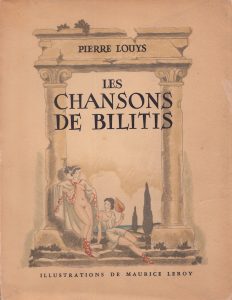 Pierre LOUŸS, pseudo de Pierre Félix LOUIS (1870-1925) : « Les chansons de Bilitis » Illustré par Maurice Leroy. Paris, Mornay, 1948. Édition in-8 broché sous couverture illustrée et repliée. Un des 2490 exemplaires sur papier vélin...
