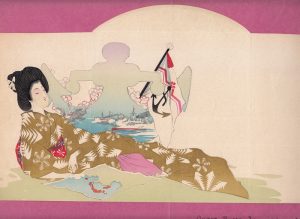 GUERRE RUSSO-JAPONAISE 1904 : Ensemble de Six lithographies contrecollées représentant de jeunes japonaises observant les principaux évènements de ce conflit. 19 x 36 cm. La guerre russo-japonaise s'est déroulée du 8 février 1904 au 5...