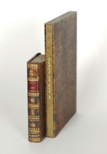 Édition In-12 brochée sous étui-chemise en demi-basane brune moderne avec titre manuscrit sur le plat.