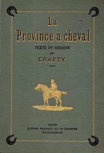 Victor Eugène GERUZEZ dit CRAFTY (1840-1906) : « La province à cheval » Paris, Plon, Nourrit et Cie, 1885. Dessins et textes de l’auteur. Édition in-4 sous reliure en percaline sur fond vert illustré d’éditeur orné d’un cavalier de...