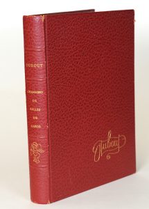 DUBOUT : « Chansons de salles de garde » Paris, Édition Michèle Trinckel, 1971. Édition in-4 reliure en simili maroquin rouge de l'éditeur, tête dorée. Manque le boitage. Un des 4500 exemplaires numéroté JT pour Jacques Trinckel.