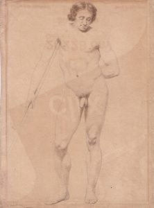 ÉTUDE de nu masculin. Dessin signé. 21 x 28 cm. ▬On y joint •une gravure érotique.