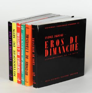 BIBLIOTHÈQUE INTERNATIONALE D'ÉROTOLOGIE. Paris, Jean Jacques Pauvert, 1971. Ensemble de 6 ouvrages au format in-12 carré se décomposant comme suit : •1. Lo duca : « Histoire de l’érotisme » •2. Anatole Jakovski : « Eros du...