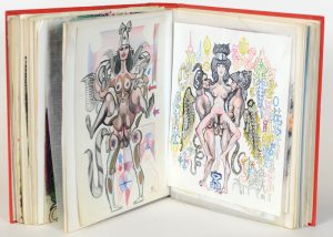 ÉROTIQUE : Recueil comprenant 62 dessins gouachés, acquarellés, techniques mixtes monogrammées