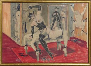 BERNARD (Faty): "C'est la dernière fois que tu désobéis !" Dessin feutre et crayon. 30 x 41 cm.