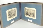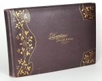 « BAPTÊME, nouvelle édition de luxe » Exceptionnel album publicitaire certainement de 1913 sous couverture luxueusement relié avec une décoration de fleurs et feuillage doré sur le premier plat comportant des modèles de couvercle de boitage...