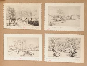 Chaque carte est légendée et signée par l’artiste au crayon, certaines sont signées dans le cuivre.