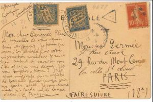 « Plus de nouvelles de vous depuis bien longtemps. Je pense que vous êtes absorbé par votre préparation militaire. Je serais bien content de savoir où vous en êtes et ce que vous devenez. […] Moi après une grippe qui m’empêcha de travailler durant quinze jours me voilà rétabli »…