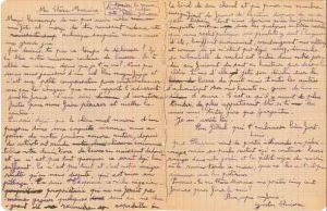 Deux textes sous forme de lettres, envoyés à la revue nantaise Horizon. – Lettre fictive de Louis à sa marraine, signée « Pour copie conforme, Gaston Chaissac » : « Chère Maraine. Merci beaucoup de ne pas avoir oublié ma fête et merci de ton ravissant cadeau, cette archaïque soupière nous a causé une grande joie ». Il décrit les misères qui accablent sa famille : un chien a mangé le jambon, des vers ses sont mis dans le beurre, les poules et les vaches du riche voisin dépouillent et ravagent leurs terres, leurs récoltes ; il lui demande de l’argent… – Lettre de Chaissac : « Il y a exactement une période que je ne pourrais préciser un chien est venu manger nos quelques pommes ; vous imaginez notre surprise et notre déception. Mais ensuite j’ai écrit un poëme cour commémorer la chose »… Il est passé l’autre jour sur une route où travaillaient les cantonniers ; un des ouvriers avait posé sa bicyclette contre un calvaire figurant une statue de Bernadette Soubirous en bergère, en bord du chemin : « “tiens, ai-je pensé, une bicyclette à la disposition de Bernadette”. Elle est très sympathique Bernadette, et compatissante. Elle intervient même auprès de la Sainte Vierge et fit même guérir un archevêque (aujourd’hui mort) qui avait des vers dans son foie »…