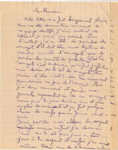 Sa lettre lui a fait « bougrement plaisir » et il lui donne de ses nouvelles : « J’écris surtout des lettres et je peints par période. Pour l’instant j’ai en tête de peindre des escargots et il doit être aussi légitime de peindre un mille d’escargots que de peindre des quantités de portraits. Les escargots, c’est en souvenir qu’enfant j’affectionnais dessiner sur le sol des escargots […] Hier j’ai commencé et pondu une gouache représentant un de ces escargots comme pour le jeux du même nom et avec en plus des ornements et ça fait quelque chose de neuf ». Il pense aussi utiliser les serpents, qu’il dessinait également tout jeune pour jouer : « j’en avais même tracé une de plusieurs centaines de mètres qui avait fait sensation », car le jeu de bille du serpent était le seul qu’il affectionnait… Il le prie de l’aider à trouver un emploi, par ses relations. Il n’a pas de métier véritable « puisque mon apprentissage de bourrelier resta inachevé et n’étant que cordonnier autodidacte », il ne peut travailler chez un vrai patron. Il se voit assez bien valet de chambre ou domestique, « car je suis assez au courant des travaux ménagers et je me débrouille même en cuisine. De même pour les travaux d’écurie »…Etc.