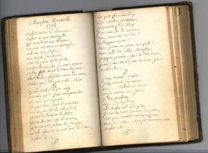 CHANSONS. Manuscrit, Receuil de poesies et chansons de differents autheurs, vers 1752-1754 ; un volume in-8 de 201 pages, reliure de l’époque basane brune usagée.