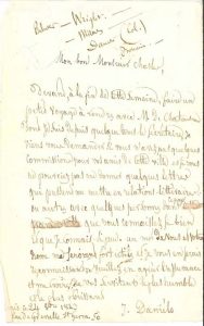 « Devant, à la fin de cette semaine, faire un petit voyage à Londres avec M. de Chateaubriand dont je suis depuis quelque tems le sécrétaire, je viens vous demander si vous n’avez pas quelques commissions pour vos amis de cette ville et si vous ne pourriez pas me donner quelques lettres qui pussent me mettre en relations littéraires, ou autres avec quelques personnes dans ce pays que vous connaissez si bien et que je connais si peu »… En tête, Chasles a noté quelques noms (Bulwer, Wright, Milnes…).