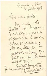 Lettre de conseils au jeune poète en herbe. « Mon cher poète Vous aimez la poésie. Vous avez de l’élan, mais il faut lire les maîtres encore et encore. Ne vous hâtez pas de publier. Vous avez dix-huit ans. Que de temps devant vous ! »…