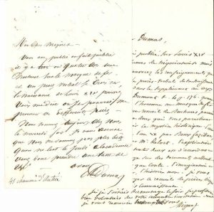 Sur le Masque de fer. « Vous avez publié ou fait publier il y a trois ou quatre ans une brochure sur le Masque de Fer et un procès-verbal je crois sur la naissance de Louis XIV pourrez-vous me dire où je pourrai me procurer ces différentes pièces »…On joint la L.A.S. de réponse de Mignet : il n’a publié sur Louis XIV que 4 volumes de négociations [1835-1842], mais il renvoie à d’autres documents pour « éclaircir ce mystère historique » : « Le reste n’est que conte. L’imagination a pu s’en accomoder, l’histoire non »… (1 p. in-8).