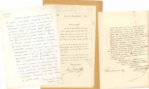Ludovic Baschet, Pierre-André Benoît (5), Étienne et Noël Charavay, Jules Claye (3), Georges-Adrien Crapelet (à Lajarriette), Eugène Fasquelle (5), Gaston Gallimard, Jacques Goldschmidt (Éditions de Minuit, 2), A. Gouhier (Imprimerie Hérissey), Bernard Grasset (2), Jacques Haumont (2), Pierre Jannet (4), Henri Jonquières (2 brouillons de lettres, plus une vingtaine de lettres à lui adressées), Damase Jouaust, Alain de La Falaise (La Jeune Parque), Michel Lévy (2), Alfred Mame, William Nelson (et lettre de John Nimmo), Laurent-Antoine Pagnerre, Béatrix-Virginie Pagnerre (contrat d’édition avec Edgar Quinet), Charles-Louis-Fleury Panckoucke, Albert Quantin (2), René Rougerie (11 lettres à Pierre Béarn, avec 7 doubles carbones de réponses, plus un contrat), N. Scheuring, Léon Téchener, Paul Touquet, etc.