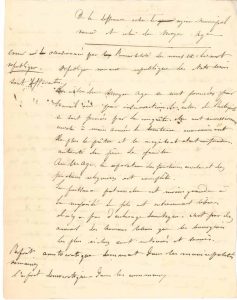 Travail historique de jeunesse. « Erreur occasionnée par l’immobilité des noms ex : le mot république. République romaine république des États-Unis sont différentes. Les villes du Moyen Âge se sont formées par travail ou par insurrection. Les villes de l’antiquité se sont formées par la conquête. Elles ont successivement envahi à main armée le territoire environnant. De plus le prêtre et le magistrat étaient confondus. Autorité du père de famille. Au M. Âge la séparation des fonctions civiles et des fonctions religieuses est complète. La puissance paternelle est moins grande à la majorité. Le fils est entièrement libre. Il n’y a pas d’esclavage domestique. C’est par des ouvriers des hommes libres que les bourgeois les plus riches sont entourés et servis. L’esprit aristocratique dominait dans les municipalités romaines, l’esprit démocratique dans les communes. Dans les municipalités romaines les magistrats étaient élus par un sénat. Dans les communes, par le peuple »… Etc.