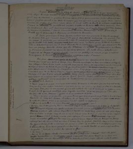 Manuscrit de travail de ce roman historique sur Henri IV. Composé de 21 chapitres, il fut publié chez Gallimard en 1935, soit trois années avant l’internement de Fleuret en hôpital psychiatrique. Le manuscrit de travail, à l’encre noire et d’une petite écriture serrée qui remplit les pages, à l’exception d’une petite marge, est abondamment raturé et corrigé, avec de nombreuses additions interlinéaires, marginales ou sur des béquets, et il comporte plusieurs parties refaites et encollées sur la version primitive. Fleuret avait débuté dans la littérature par des rééditions de textes des XVIIe et XVIIIe siècles, qui influencèrent fortement son art très poli, aux phrases ciselées, et son goût pour l’histoire. Aussi s’agit-il d’un roman historique, qui se passe dans les toutes premières années du XVIIe siècle, sous le règne d’Henri IV, dans lequel apparaissent des personnages illustres, comme le Roi lui-même, Rosny (Sully), les princes de Conti, Vendôme, le maréchal de Bassompierre, Henriette d’Entragues, maîtresse royale. La trame du roman est fournie par la conspiration du duc de Biron, gouverneur de Bourgogne, qui se jugeant mal payé des services qu’il avait rendus au Roi lors de la reconquête du royaume, complota avec le duc de Savoie, le gouverneur de Milan, et l’Espagne, et mourut décapité en 1602. L’exemple fournit à Fleuret le second élément de son roman, la conspiration de Ravaillac, au moment où le roi allait entrer en guerre contre les Habsbourg d’Espagne et d’Allemagne. Ainsi, c’est toute la seconde partie du règne d’Henri IV qui fait l’objet de ce roman, œuvre truffée de petites notes d’érudition, de citations tirées des grands esprits du temps, et qui se termine sur l’assassinat du Roi : « Le carrosse venait de s’arrêter pour ne pas accrocher les bornes plantées devant les boutiques. C’était en face du Cœur couronné d’une Flèche. D’Épernon fit un geste de la main qui serrait la lettre, comme s’il eût dû en replacer le texte sous ses yeux. Alors, François Ravaillac, un pied sur le moyeu, l’autre sur une borne, le manteau rejeté sur l’épaule, la main droite appuyée aux ridelles, et soufflant une forte haleine de fièvre et de vin, frappa de la main gauche le Roi au-dessus du cœur, d’un coup rapide mais mal assuré, qui ne fit qu’une blessure peu profonde. – Ah! je suis blessé !... s’écria le Roi en haussant le bras »... (p. 152). Ce passage révèle bien l’érudition de Fleuret qui donne vie à la célèbre gravure représentant l’assassinat d’Henri IV. Quant à la phrase prononcée par le Roi, elle est aussi historique. On a relié en tête 2 L.S. : Gaston Gallimard à Fernand Fleuret (14 mars 1934, en-tête de la Librairie Gallimard), demandant si son « grand roman historique sur Henri IV » pourra être publié cette année chez Gallimard ; Pierre Hamp à Mme Rouzaud (Le Vésinet 4 mars 1935), sur le prix que le jury de la Renaissance va attribuer à Fleuret pour son œuvre, à la suite d’Échec au Roi, « volume superbe, puissant »…