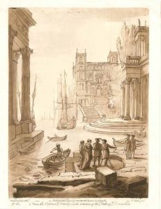 Gravures d’après Claude Lorrain, publ. par John Boydell (1774) extraites du Liber Veritatis. Or, A Collection of Two Hundred Prints, After the Original Designs of Claude le Lorrain, in the Collection of His Grace the Duke of Devonshire, Executed by Richard Earlom, in the Manner and Taste of the Drawings... Nos 47, 50, 61, 66, 187.