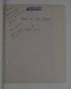 Important manuscrit de premier état avec de nombreuses ratures et corrections, qui fait suite au livre Du Pur Amour publié en 1955 chez Gallimard, et correspond aux trois parties inédites ajoutées par Jouhandeau lors de la réédition de l’ouvrage en 1969 chez le même éditeur. Jouhandeau a inscrit cet envoi à Florence J. Gould (1895-1983) sur la page de titre : « 1er état en 4 parties que je dédie à ma bien aimée Florence. Marcel Jouhandeau 3 juin 1958 ». Le manuscrit, comme l’indique Jouhandeau, est divisé en 4 parties, chaque volume ayant sa pagination propre : I Robert marié (I, p. 1-139), II La catastrophe (p. 140-207), III Retour à la Paix (II, p. 1-71), IV « et fin » (p. 72-244). Il est écrit à l’encre bleue ou violette sur des feuillets de papier-classeur quadrillé et perforé, inégalement remplis, certains au recto et au verso, souvent très raturés et corrigés ; la plupart ont été biffés d’un trait de crayon rouge après réécriture. On relève d’importantes variantes par rapport au texte imprimé. Dans le premier volume du manuscrit, une centaine de pages n’ont pas été reprises dans l’édition originale (p. 429-497 du livre). Dans le second volume, de même, 80 pages ne furent pas retenues dans l’édition définitive, pendant que d’autres pages subissaient d’amples modifications (p. 499-561 du livre). Les divergences constatées correspondent aux parties expurgées par l’éditeur, ou écartées par l’auteur comme trop intimes. Dans Du Pur Amour, récit autobiographique, Marcel Jouhandeau raconte la passion amoureuse qui l’anima pour un jeune homme rencontré par hasard lors d’un voyage en train en 1948. La relation amoureuse qu’il noue avec Robert Coquet lui a inspiré deux ouvrages, L’École des garçons (en 1953) et Du Pur Amour en 1955. Le titre Du Pur Amour donne le ton à ce livre placé sous le signe de l’absolu : Jouhandeau tâche d’explorer une double morale qui impose à son auteur une abnégation et une fidélité, tant vis-à-vis de son jeune amant et que du foyer de celui-ci (Robert Coquet s’est marié), s’essayant par là-même à vivre pleinement une sexualité contrariée comme gage d’une félicité à venir. Citons ces quelques lignes : « J’aime tout ce qui fait le bonheur de Celui que j’aime, La femme est une parure et Brigitte ne te dépare pas. Elle t’embellit. Pourquoi m’en fâcherai-je ? [...] De plus en plus persuadé que dans la mesure où elle est définitive et sans faute, la passion ressemble à la paix intérieure. Après toutes les souffrances qui l’ont décantée, épurée, elle connaît une sorte de foi en elle-même, et en son objet exclusive, une patience préférable peut-être à la possession [...] Il faut que je me décide à l’aimer vraiment, à l’aimer pour lui et non pour moi, à l’aimer, comme il entend l’être de moi. Tant pis si je souffre, pourvu qu’il ne souffre pas. Si pénible que ce soit pour moi, je vais lui rendre mon amour agréable et peut-être l’aimerai-je tellement, l’aimerai-je assez pour trouver tant de joie à lui plaire que j’en oublierai ma peine. Je n’exigerai rien...Grâce à lui, j’ai atteint une élévation, à laquelle je ne puis renoncer, même s’il me manque… Il est des êtres qui ont le privilège d’exprimer comme personne les sentiments de tout le monde. Cela tient-il autant à la musique de leur voix, à l’à-propos de leur réflexion, on les écoute, sans pouvoir s’empêcher d’être ému ou de sourire »... Citons encore la toute dernière phrase du manuscrit : « L’essentiel, c’est de n’être toujours tout entier qu’à ce qu’on aime, sans en rien distraire que pour en redoubler et en perpétuer la possession ».