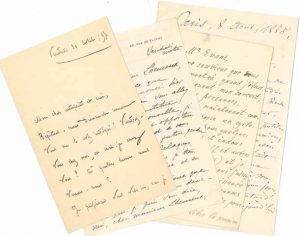 Augusta Holmès (1897, à Maurel, le félicitant pour son « admirable interprétation de Don Juan »), Raoul Pugno (recommandant son futur gendre Georges Delaquys), Lazare Saminsky (Londres, à Mr Evans, lui proposant de mettre en musique certaines de ses poésies persanes), Ambroise Thomas (1885, à Maurel, sur leur collaboration pour Hamlet : les concours publics l’ont empêché de travailler, mais il a maintenant toutes les paroles qu’il est en train de terminer et lui enverra bientôt ; « Pensez à Shakespeare autant que j’y pense moi-même »)...
