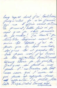 Tournée en Argentine. « Ma douce Mamy à moi, je ne t’écris pas souvent mais si tu savais le travail, les voyages plus la fatigue que nous avons tu comprendrais pourquoi il m’est difficile une demie heure de répit et quand par hazard je la trouve, je m’écroule sur mon lit pour récupérer un peu, je me sens vraiment très fatiguée et à mon retour je vais avoir besoin d’un long repos mais je m’accroche au branches pour essayer de tenir le coup pour justement pouvoir prendre ce long repos dont j’ai tant, besoin, jusqu’alors je n’ai jamais pu me l’offrir mais si Dieu le permet, cette fois-ci je crois que je vais pouvoir le prendre ! Ta santé ? Je tremble toujours avant d’ouvrir tes lettres, j’ai si peur que tu sois malade, soignes-toi et gardes-toi bien pour moi, j’ai besoin de ton affection terriblement. […] Jacques [Pills] se joint à moi pour t’embrasser de tout mon cœur qui t’aime et qui pense et repense sans cesse à toi. Ta petite fille »…
