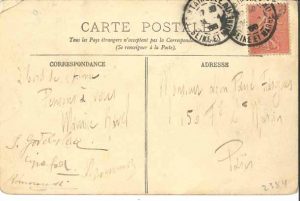 RAVEL (Maurice). (1875-1937). Carte postale a.s., [Fontainebleau 24 avril 1905], à Léon Paul Fargue ; carte postale illustrée (Fontainebleau. Le Cabinet de l’Abdication), texte et adresse au dos avec timbre et cachets postaux (encre un peu pâle).