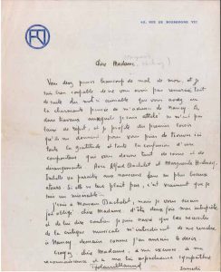 Au sujet du 9e Concert du Conservatoire de Nancy, où Marguerite Herleroy interprétera deux fragments de son opéra-bouffe Isabelle et Pantalon. Il s’excuse de ne pas l’avoir remerciée plus tôt de son mot aimable : « Les durs travaux auxquels je suis attelé ne m’ont pas laissé de répit, et je profite du premier loisir qu’ils me donnent pour vous prier de trouver ici toute la gratitude et toute la confusion d’un compositeur qui vous donne tant de soins et de dérangement. Avec Alfred Bachelet et Marguerite Herleroy, Isabelle va paraître aux Nancéens dans ses plus beaux atours. Si elle ne leur plait pas, c’est vraiment que je suis un misérable »... Il est navré « que les nécessités de critique musicale m’interdisent de me rendre à Nancy demain comme je l’aurais désiré »… [le concert a lieu le lendemain, dimanche 18 février].