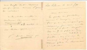 Belle lettre. Il lui reproche de parler en paraboles, comme l’Évangile : on ne comprend pas toujours… Il a reçu les nouveaux morceaux de son ancien élève Georges Alary, qu’il a trouvés « pleins de charme et d’intérêt ». Il a terminé son Quatuor : « J’espère bien qu’on ne l’entendra pas de sitôt ; ces sortes de choses ne sont bonnes à entendre que lorsque les exécutants les ont assez piochées pour les savoir par cœur ; pour faire comprendre une œuvre aux autres, il faut d’abord la comprendre soi-même. Je ne laisse pas publier le Carnaval [des animaux] parce qu’il est d’une exécution difficile ; s’il était public n’importe qui pourrait le jouer n’importe comment, et il tomberait du comique dans le ridicule ». Il aurait aimé entendre à la Trompette « la folie de cet extraordinaire fantaisiste qu’est Saraz ! » [Sarasate]. Il ne faut pas compter sur lui pour la Trompette, il veut repasser par le Brésil avant de rentrer en France en août. « C’est dommage, mes doigts sont revenus et je joue comme St piano lui-même »… Il insère une équation dans la formule de politesse (Lemoine était mathématicien).