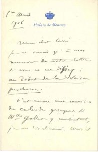 SAINT-SAËNS (Camille). L.A.S., Monaco 1er mars 1906, à Albert Carré ; 3 pages in-12, en-tête Palais de Monaco.