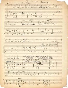 Premier jet d’un air : « Au bord du clair ruisseau qui fuit près du vieux saule »…., pour un opéra non identifié ; chant et piano, avec remarques d’instrumentation (16 mesures), noté au dos « fin du Duo (2d acte) » : à l’encre noire sur papier à 24 lignes, avec ratures et corrections.