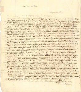 Belle lettre relative à ses Recherches nouvelles sur l’histoire ancienne (1814). Leur échange de lectures est au désavantage de son confrère : « au lieu de tableaux brillans, instructifs et amusans que présente votre livre [Les Noces de Thétis et de Pélée, traduit en vers français], je ne vous donne que des calculs et des chiffres à vérifier, un vrai squelette de la poupée historique qui dans vos mains se montre si richement vêtue »… Il lui demande en tant qu’expert à se prononcer sur son plan restauré ; tout le livre n’exige pas la même attention. « Si certains points fondamentaux sont bien établis, quelques méprises de détail seront aisément redressées. La question est de savoir si mon système est fortement lié, et s’il renverse l’édifice incoherent qui depuis Usher et Pitau subsiste faute d’un autre : si j’ai bien vû, tout ce qui depuis 200 ans a été compilé sur les tems anterieurs à la monarchie persane est à refaire. Il y a dix ans je l’eusse remplacé par deux ou trois volumes, qui eûssent été d’une autre instruction que les capucinades de Rollin et de Bossuet, et de cette Histoire universelle de prêtres anglais : mais il n’y faut plus songer. Adieu les forces »… Son confrère peut ensuite communiquer son manuscrit à un autre membre de l’Institut, tel que Daunou ; « l’instruction se trouve bien en deux autres dont l’un est mon collegue ; mais le prejugé biblique exclud l’impartialité. J’ai promis la communication surtout du second mémoire à Mr de Tracy »… Il parle ensuite du produit de la métairie locale : grains, pommes de terre, vin, cidre, et déplore que le bourgeois préfère donner quelques liards à la porte que de faire travailler, même sur son bien. Quant à lui, « je passe mes matinées à éplucher deux grosses malles de vieux titres et papiers de famille entassées depuis quatre ou cinq generations »…