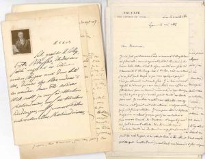 Guillaume-Alfred Heinrich (1829-1887) germaniste : 30 L.A.S. à Charles Jourdain, philosophe, médiéviste et haut fonctionnaire (1870-1876). Heinrich Lehmann (1814-1882) peintre : L.A.S. en allemand (plus un jugement sévère sur lui par Charles Kestner). François-Adolphe Loève-Veimars (1801-1854) historien et diplomate : L.A.S. avec dessin évoquant Heinrich Heine et le bal Musard. Friedrich Schöll (1766-1833) philosophe et diplomate français au service du roi de Prusse : L.A.S. à l’orientaliste Amable Jourdain. Adolf Stahr (1804-1876) historien et critique allemand, époux de la romancière Fanny Lewald : 4 L.A.S. à Charles Jourdain. Friedrich Steudel (1779-1837), théologien et orientaliste allemand : 11 L.A.S. à Amable Jourdain (1810-1813). Joseph Willm (1790-1853) philosophe et traducteur alsacien, spécialiste de la littérature et de la philosophie allemandes : 9 LAS à Charles Jourdain. Divers documents joints : carte de visite de Gerhard Paulus, lettre en allemand à propos de Goethe, etc.