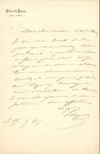 Relative à son élévation au grade de Grand Officier de la Légion d’honneur (7 novembre 1845). « Je suis bien touché de la part que vous voulez bien prendre à ce que l’on vient de faire pour moi et je m’empresse de vous en adresser tous mes remerciements »…