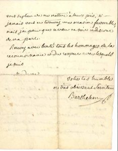BARTHÉLEMY (François). (1747-1830) diplomate et homme politique, il négocia le traité de Bâle et fut membre du Directoire L.A.S., Soleure 3 février 1792, à une dame ; 3 pages ¾ in-4 (petite fente réparée, un bord un peu rogné).