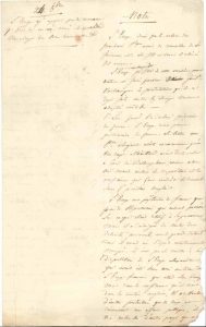 Protestation de Napoléon, une semaine après son arrivée à Sainte-Hélène (soir du 16 octobre). « L’Emp. désire par le retour du prochain vau avoir des nouvelles de sa femme et de son fils et savoir si celui-ci vit encore. L’Emp. profite de cette occasion pour réiterer et faire parvenir au Gouvt Britannique la protestation qu’il a dejà faite contre les etranges mesures adoptées contre lui. 1° Le gouv. l’a declaré prisonnier de guerre. L’Emp. n’est point prisonnier de guerre. Sa lettre au Pce Regent ecrite et communiquée au cap. Maitland avant de se rendre à bord du Bellerophon prouve assez au monde entier ses dispositions et la confiance qui l’ont conduit librement sous le pavillon anglais. L’Emp. eut pu ne sortir de France que par des stipulations qui eussent prononcé sur ce qui etait relatif à sa personne mais il a dedaigné de meler des interets personnels, avec les grands interets dont il avait eu l’esprit constamment occupé. Il eût pu se mettre à la disposition de l’Emp. Alexandre qui avait été son ami ou bien de l’Emp. François qui était son beaup[ère] mais dans la confiance qu’il avait dans la nation anglaise, il n’a voulu d’autre protection que ses lois […]. 2e. Si l’Emp. eut été prisonnier de guerre, les droits de nations civilisés sur un prisonnier de guerre sont bornés par le droit de guerre et finissent d’ailleurs avec la guerre même. 3e. Le gouv. anglais considerant l’Emp. même arbitrairement comme prisonnier de guerre, son droit sur lui se trouvait alors borné par le droit public […]. La mort qui lui eût été donnée à bord du Bellerophon en rade de Plimouth eût été un bienfait en comparaison. Nous avons parcouru les contrées les plus infortunées de l’Europe, aucune ne saurait être comparée à cet aride rocher privé de tout ce qui peut rendre la vie supportable. Il est propre à renouveller à chaque instant les angoisses de la mort »… Un dernier paragraphe de compliments à l’amiral est marqué d’un trait et d’une mention marginale : « omis »…