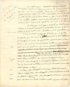 Sur les origines de la famille Bonaparte. Notes destinées à ses mémoires (Mémoires et correspondance politique et militaire du Roi Joseph, publiés, annotés et mis en ordre par A. Du Casse, Perrotin, 1853-1854), et écrites pour réfuter les exagérations de toutes sortes concernant l’illustration de la famille de l’Empereur. Il est incontestable « que les ancêtres de Napoléon, qui, lui-même, a trois fois fixé le choix du Peuple, ont constamment occupé des magistratures populaires, depuis plusieurs siecles – on voit au livre del Chiodo de Florence un Bonaparte exilé avec ses enfants en 1130 […]. Bonsemblant Bonaparte est nommé commissaire pour la paix entre Padoue et Trévise. Nordius est podesta de Parme : en 1296, Jean Bonaparte, ou Buonaparte […] est nommé commissaire pour la paix entre Sarzane et Carrère »… Suivent des dates marquantes de l’histoire familiale : postes, introduction du nom de Napoléon, ses propres débuts et ceux de son frère, à Autun et Brienne… Note à la fin de l’éditeur des Mémoires, Albert Du Casse.