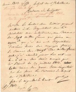 Ordre de paiement à son intendant Michelot d’une somme de 7.000 francs, faisant avec les sommes mises à sa disposition « sur les fonds des voyages » un total de 26.000 francs accordés d’après les devis de M. Bénard (il s’agit des travaux dans son palais de Paris).