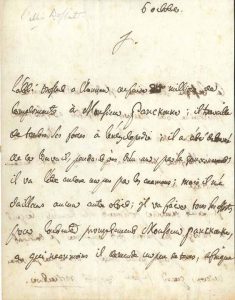 « L’abbé Bossut a l’honneur de faire un million de compliments à Monsieur Panckouke ; il travaille de toutes ses forces à l’encyclopedie ; il a été detourné de ce travail, pendant près d’un an, par le gouvernement ; il va l’etre encore un peu par les examens ; mais il n’a dailleurs aucun autre objet ; il va faire tous ses efforts pour contenter promptement Monsieur Panckouke »…
