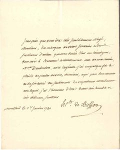 BUFFON (Georges-Louis Leclerc, comte de). (1707-1788) naturaliste et écrivain. L.S., Montbard 1er janvier 1780 ; 1 page petit in-4.