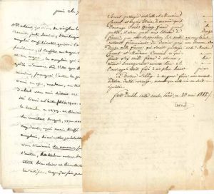 Contrat pour De la défense des places fortes, cédé à Mme veuve Courcier pour « imprimer et débiter une troisième édition dudit ouvrage, format in-4°, caractère St Augustin et à le tirer au nombre de Deux mille exemplaires et vingt cinq en papier vélin »… Suivent des précisions sur le coût de la fabrication, les déboursés de la dame Courcier étant couverts par la vente du premier mille, et « les mille autres exemplaires restant seront partagées entr’elle et Monsieur Carnot et au prix libraire »… On joint un ensemble de 12 L.A.S. et 1 P.S. de son frère, Jean-François-Claude Carnot, à la même, ou à son second mari Victor Bachelier, Paris 1818-1830, agissant comme fondé de pouvoirs de son frère (puis de son neveu), à propos de cet ouvrage et de l’Exposé de la conduite [politique de M. le lieutenant général Carnot, depuis le 1er juillet 1814].