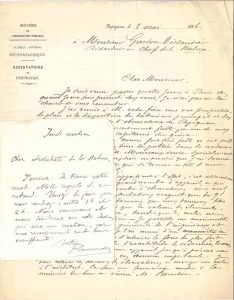 « Cher Architecte de la Nature, J’arrive. Je trouve votre mot. […] Venez le jour que vous voudrez […] Nous causerons et nous déciderons sur votre dessin, qui sera une création, car mes renseignements sont bien insuffisants »… On joint une L.S. du Dr Fines, directeur de l’Observatoire de Perpignan, à Gaston Tissandier, rédacteur en chef de La Nature, Perpignan 2 mai 1886.