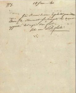 FROTTÉ (Louis de). (1766-1800) général en chef de la chouannerie normande, il fut fusillé. L.A.S., 18 janvier [1800], à Boucault ; demi-page petit in-4.