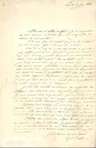 Au savant chargé de l’inspection des bibliothèques et musées scientifiques au Portugal et en Espagne [l’insurrection du Deux-Mai à Madrid faillit lui coûter la vie, mais il parvint, muni d’un laissez-passer du général Junot, duc d’Abrantès, à passer au Portugal, où il poursuivit sa mission, y recueillant d’importantes collections et des catalogues détaillés]. « Vous ne m’avez dit qu’un mot, de tout ce que vous avez souffert pour le nom français, et pour les sciences que vous honorez, pendant les jours d’une erreur funeste ; mais j’en ai été instruit très en détail, et je n’ai pas besoin de vous dire que je n’en oublierai rien, ni comme votre ami, ni comme naturaliste, ni comme grand chancelier. Les savants des Espagnes, ne seront pas les Espagnols qui auront le moins à se féliciter de l’ordre de choses que notre auguste Empereur prépare pour leur patrie. J’espère que nous devrons à ce nouvel ordre, la publication du grand ouvrage sur le Méxique. Je suis très sensible au souvenir du respectable M. Ortéga ; son estime est d’un bien grand prix pour moi. Je vous remercie de la complaisance que vous voulez avoir de me procurer un exemplaire de l’ouvrage espagnol de M. Parra sur les poissons de la Havane »...